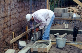 The first layer of blocks is one of the most important. Having enough mortar meant more mixing.