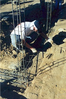 Another reinforced foundation was formed on top of the original concrete base. Everything had to be wired together before the concrete could be poured.