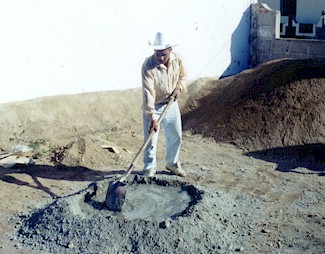 Somehow the natives seem to know just how much water will be required to make the right consistency. This water will be worked into the mix little by little.